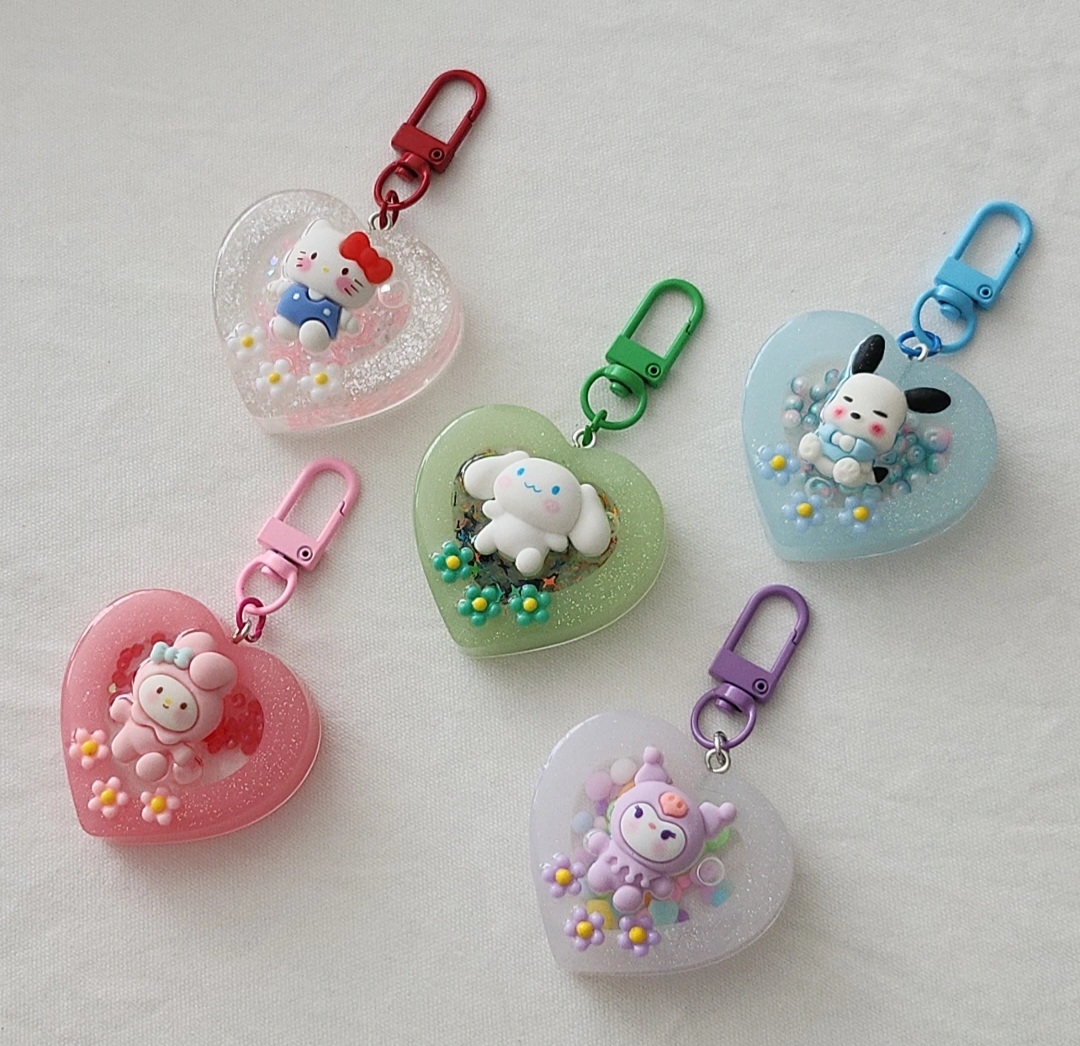 깜찍한 캐릭터들이 가득한 워터쉐이커 키링입니다.