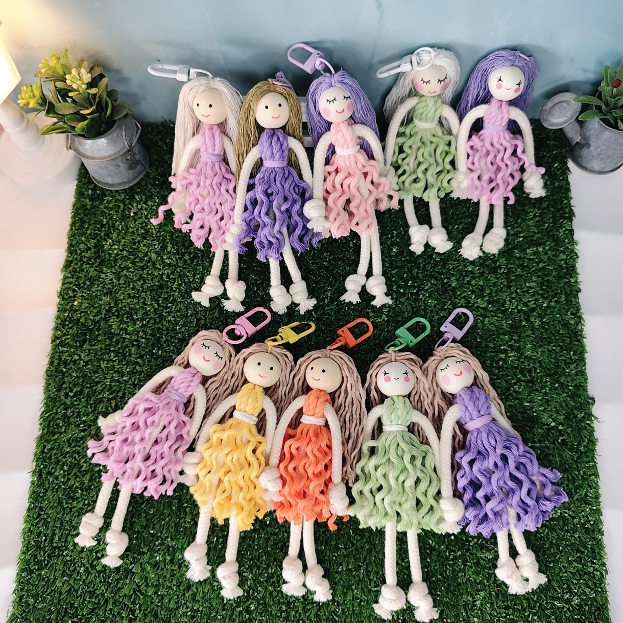 알록달록 다양한 색상의 양말목 네잎클로버 키링입니다