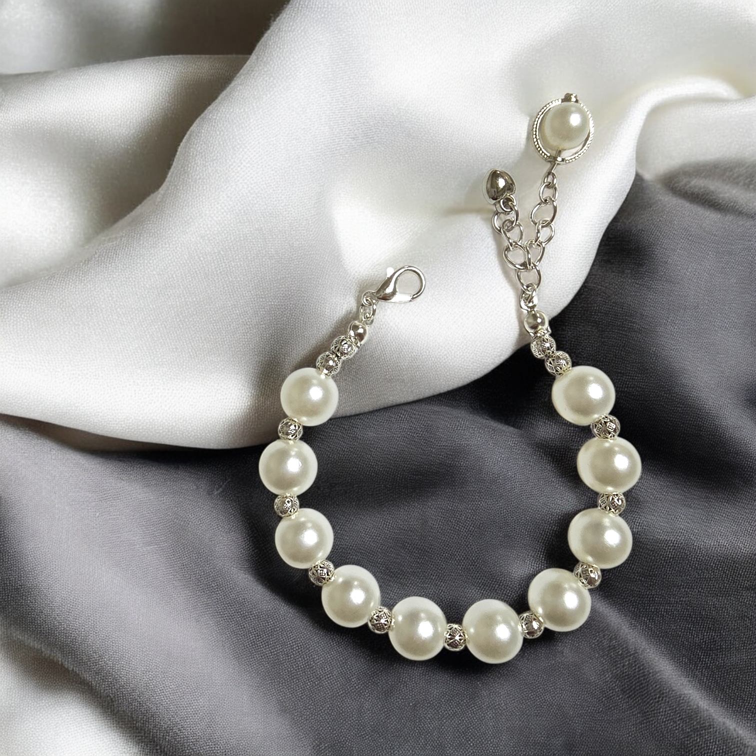 10mm의 진주와 4mm의 실버볼 MIX 디자인 이에요