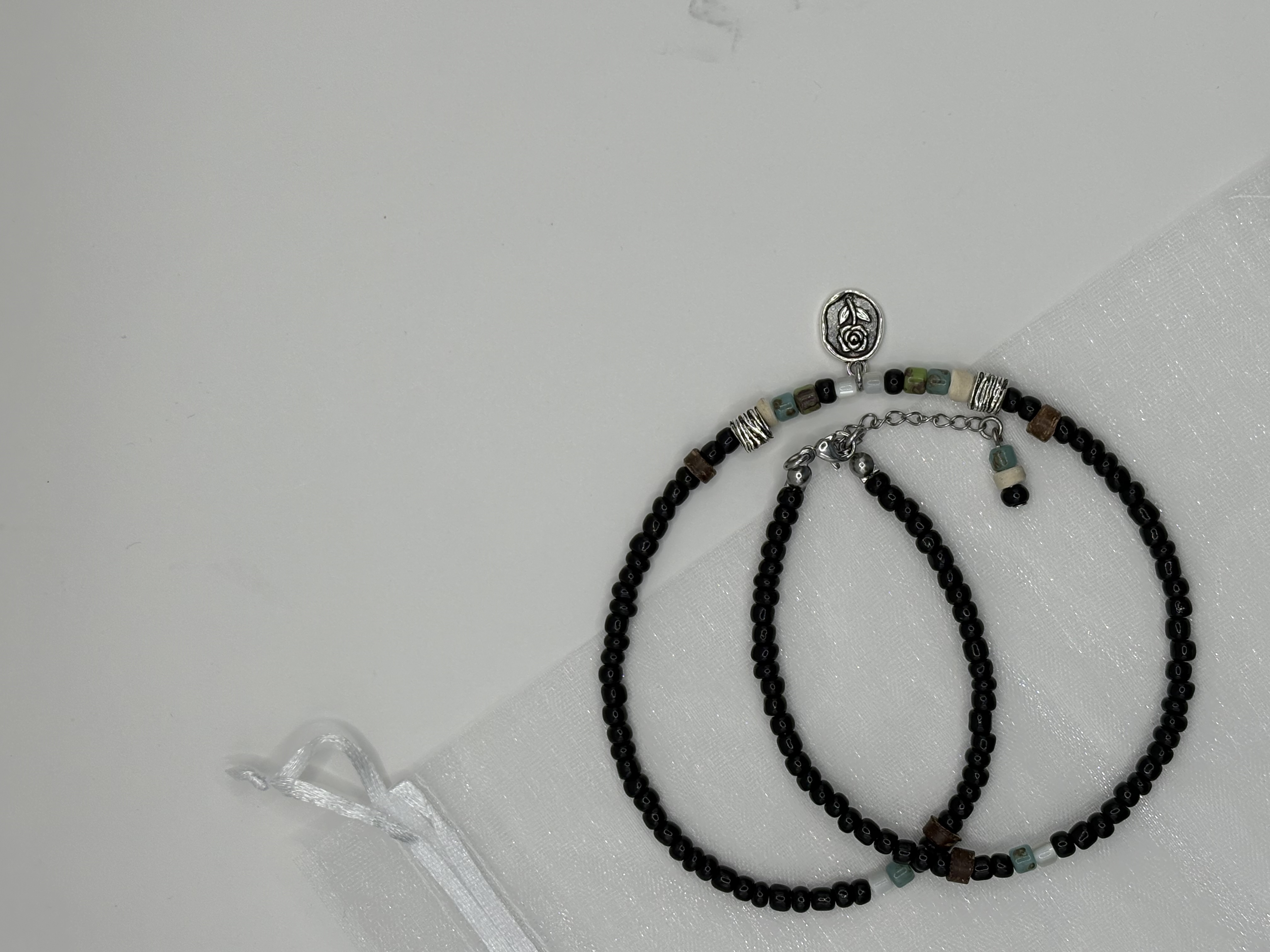 블랙 비즈에 우주와 꽃이 들어가있어 더욱 개성있어 보이고