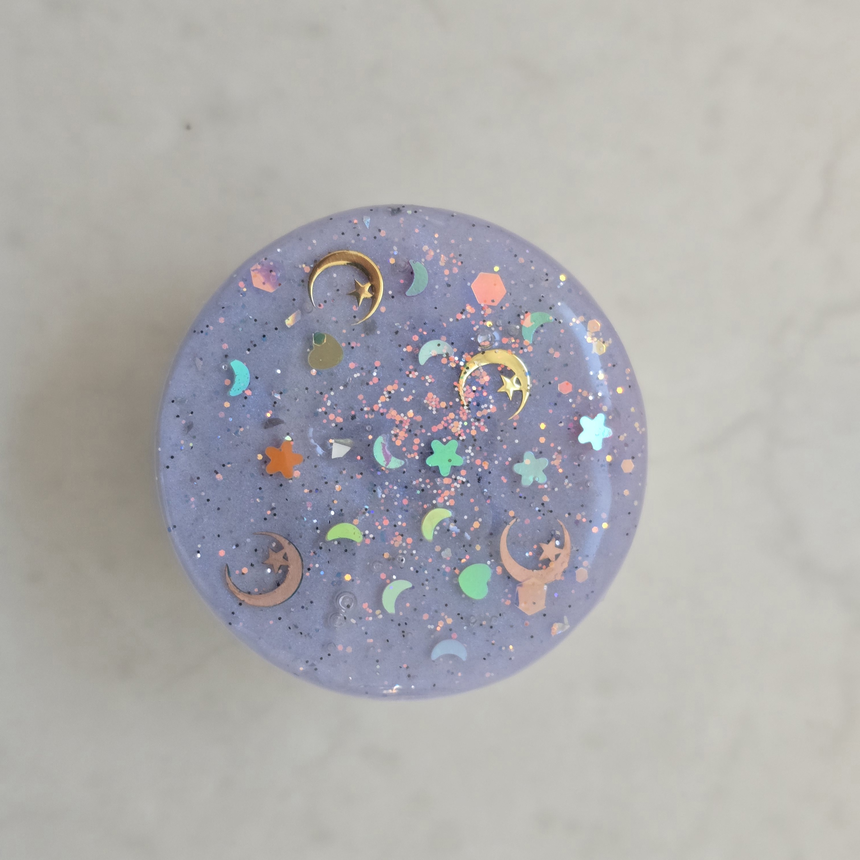 투명 레진 속에 담긴 섬세한 나비와 오로라처럼 반짝이는 글리터가 만나, 보는 순간 시선을 사로잡는 유니크 스마트톡입니다. 빛을 받을 때마다 각도에 따라 다르게 반사되는 은은한 반짝임이 휴대폰을 더욱 특별하게 만들어줍니다. 평범한 케이스도 이 스마트톡 하나로 분위기가 확 달라집니다.